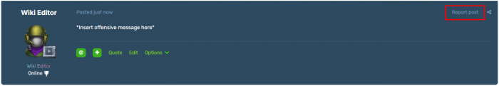 有时候,用户在他们的帖子/话题中倾向于违反规则。如果你碰巧发现了违规行为,可以通过点击“报告帖子”按钮(位于每个帖子的右上角)向论坛版主团队报告。你也可以在报告时留下信息,以帮助论坛版主更好地理解情况。
