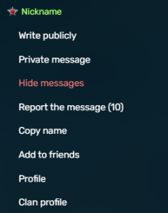 通过点击聊天中玩家的昵称、战斗中的玩家列表或战斗本身的左键鼠标(LMB)打开上下文菜单。