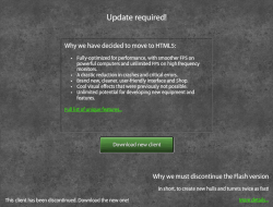 12月2日,Flash离开永久的时刻到了。举办了一场“再见,Flash!”活动,各个等级的水晶箱子都会掉落,玩家可以加入一个特殊游戏模式,使用遗产激光炮和蜂王在高地角斗场互夺军旗。此日期之后,将无法再使用Flash客户端进行游戏(Steam客户端除外)。