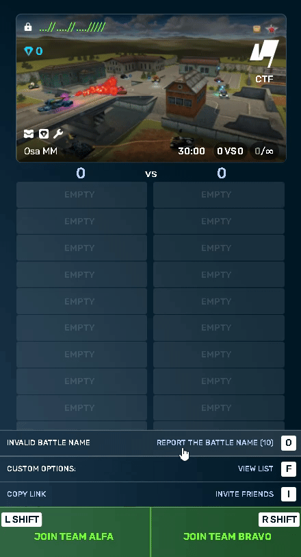 一个的名字专家战场可以由创建它的玩家决定。因此,它可能包含侮辱和其他不当内容。要报告不当的PRO-战斗名称,请在其中选择它。战斗列表并按«报告战斗名称»在右下角。投诉将由我们的团队进行审核。主持人.