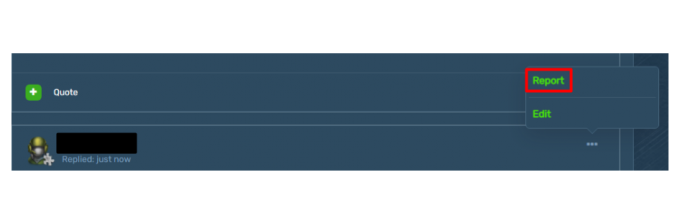 如果一个玩家注意到另一个玩家违反了规则在私人信息,然后,访问对话后,他们可以报告消息。为此,请点击右上角的三个点,然后选择«报告»之后会出现一个表格,你可以写下发送报告的原因。在收到报告后,论坛管理员将获得对二等兵对话的访问,违规者的行为将被制止。